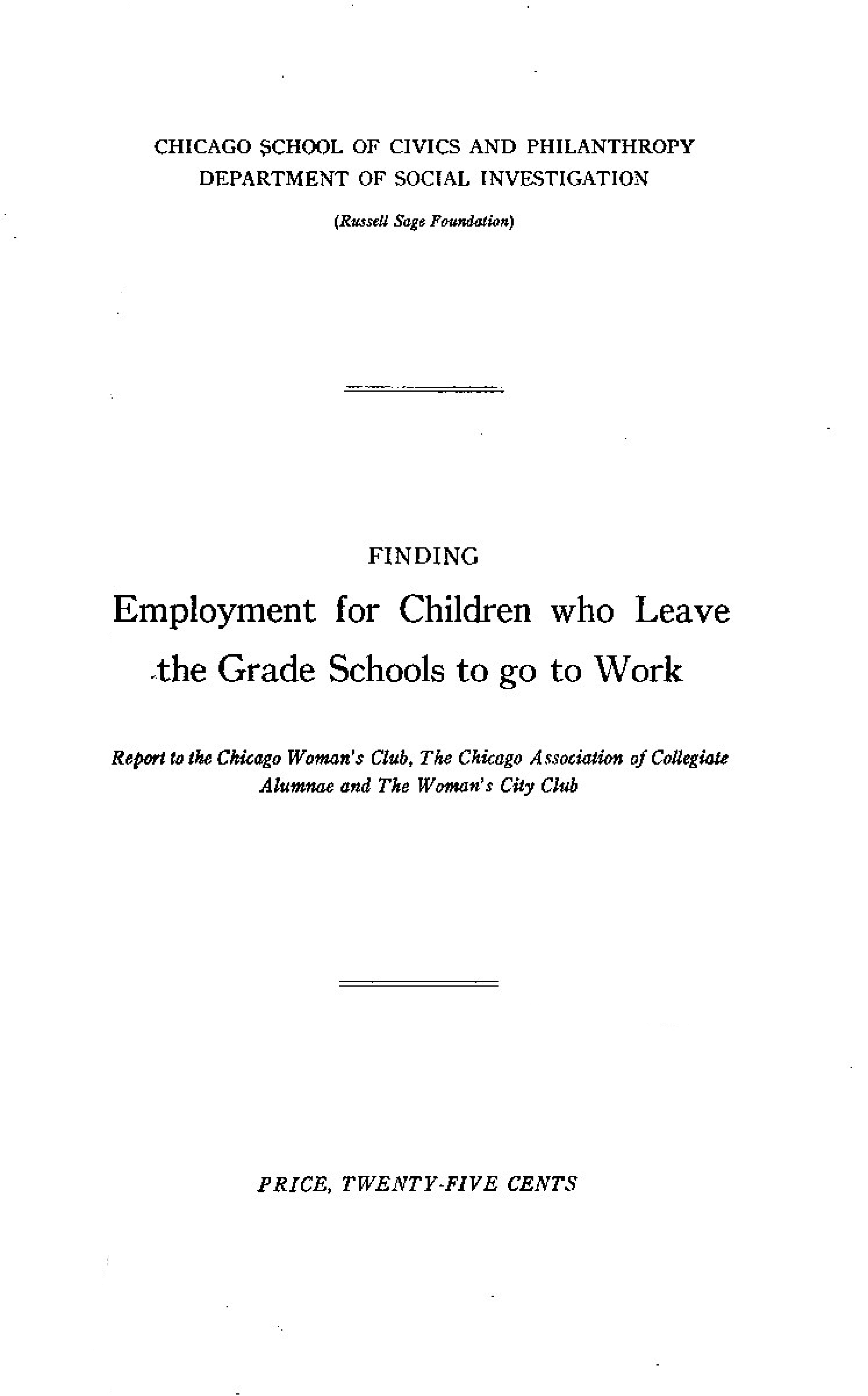 Finding Employment for Children who Leave the Grade Schools to go to Work