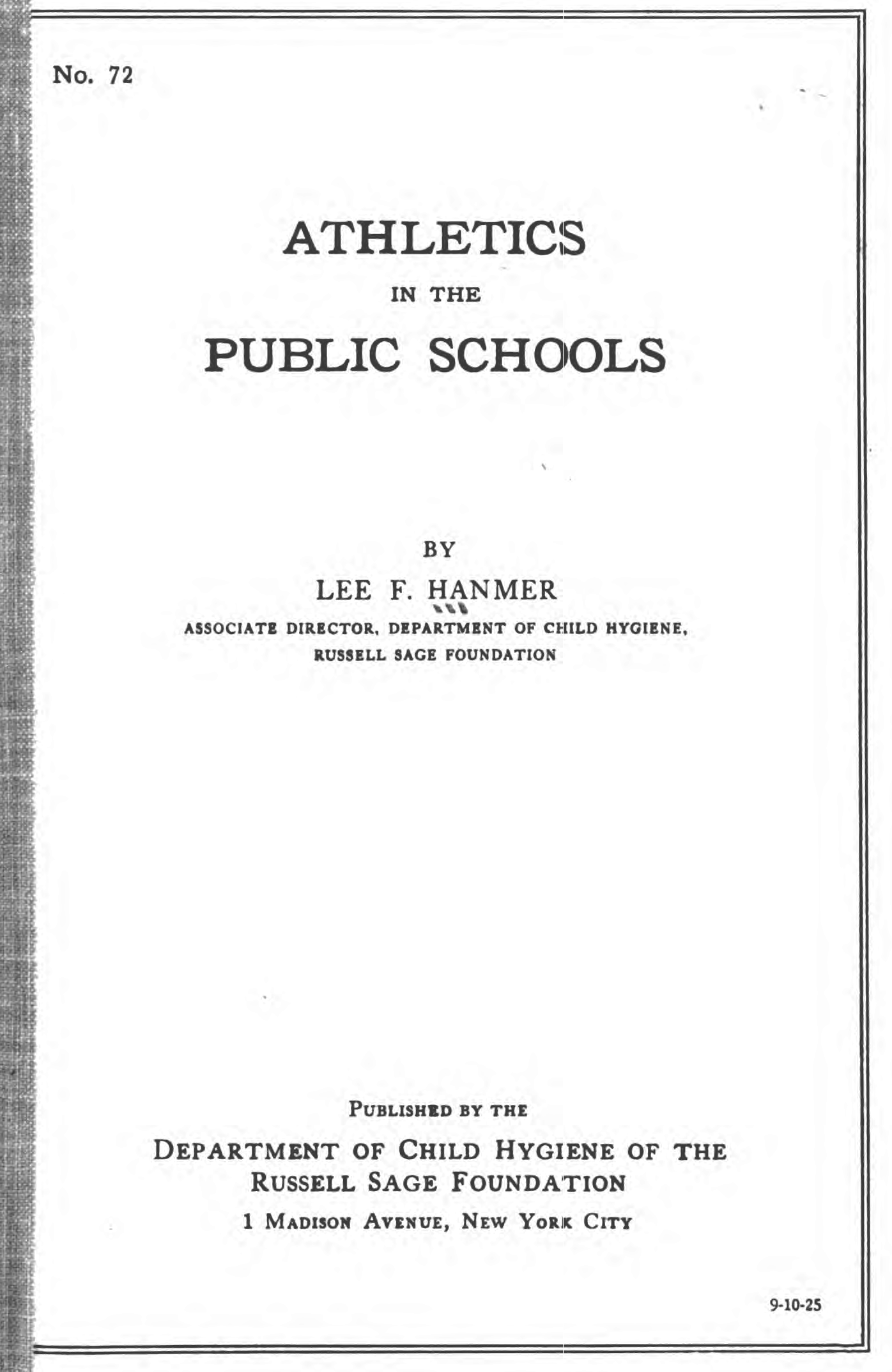 This booklet provides a general review of the work of the Public Schools Athletic League and discusses the Athletic Badge Test, a test given to boys requiring them to run a certain distance, jump a certain distance, and pull themselves up to a bar a certain number of times.
