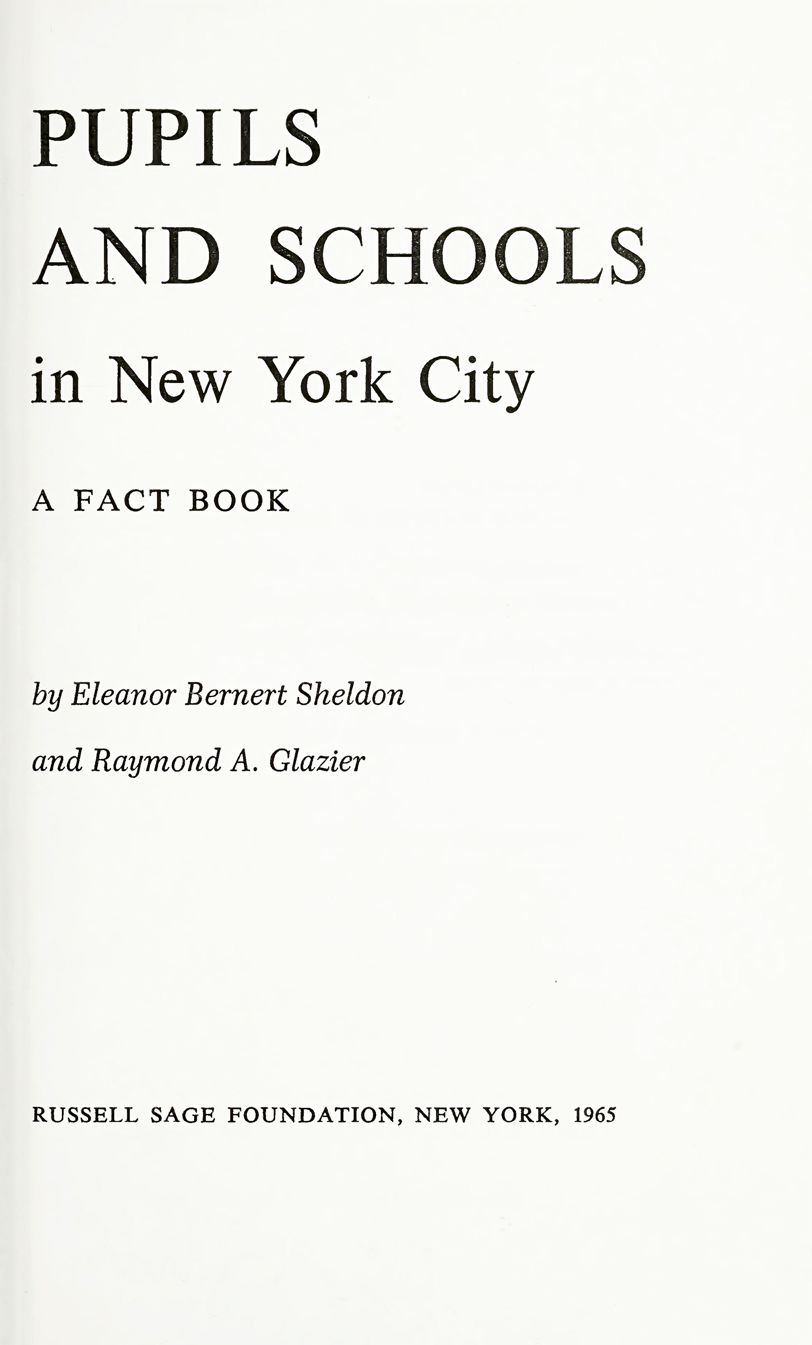 Eleanor Bernert Sheldon was sociologist and executive associate at the Russell Sage Foundation. Raymond A. Glazier was chief of the Bureau of Community Statistical Services at the Community Council of Greater New York.