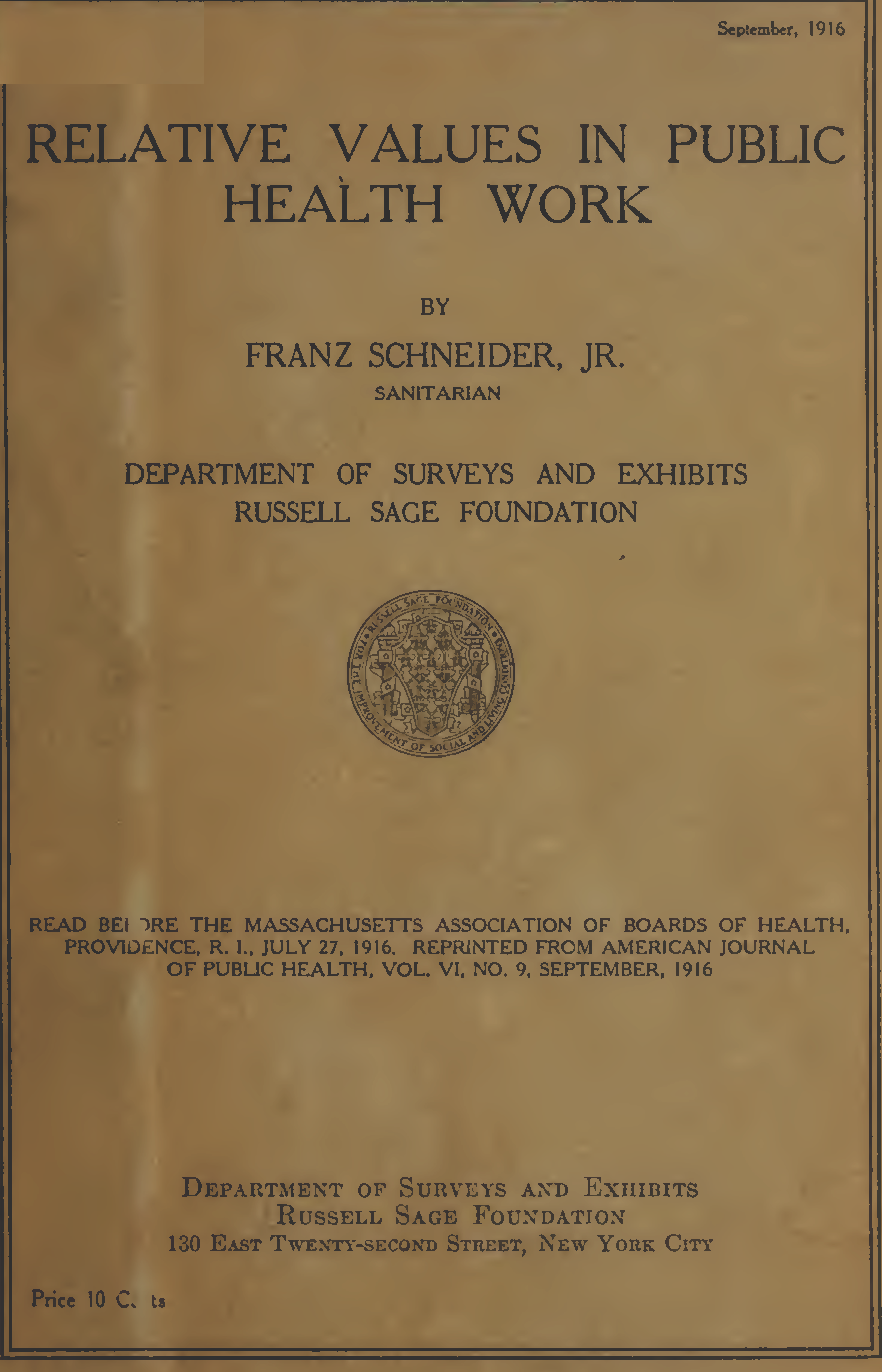 FRANZ SCHNEIDER, JR. was sanitarian at the Department of Surveys and Exhibits of the Russell Sage Foundation.